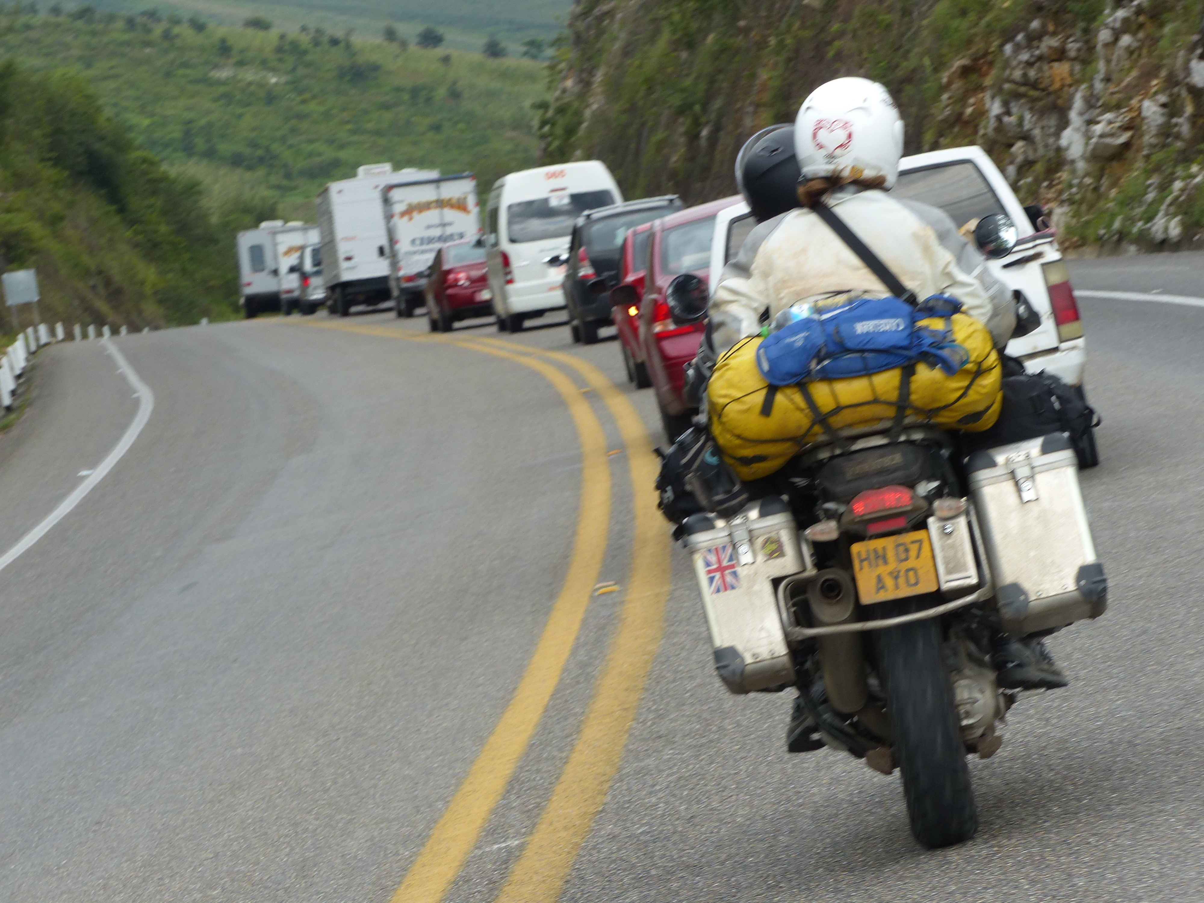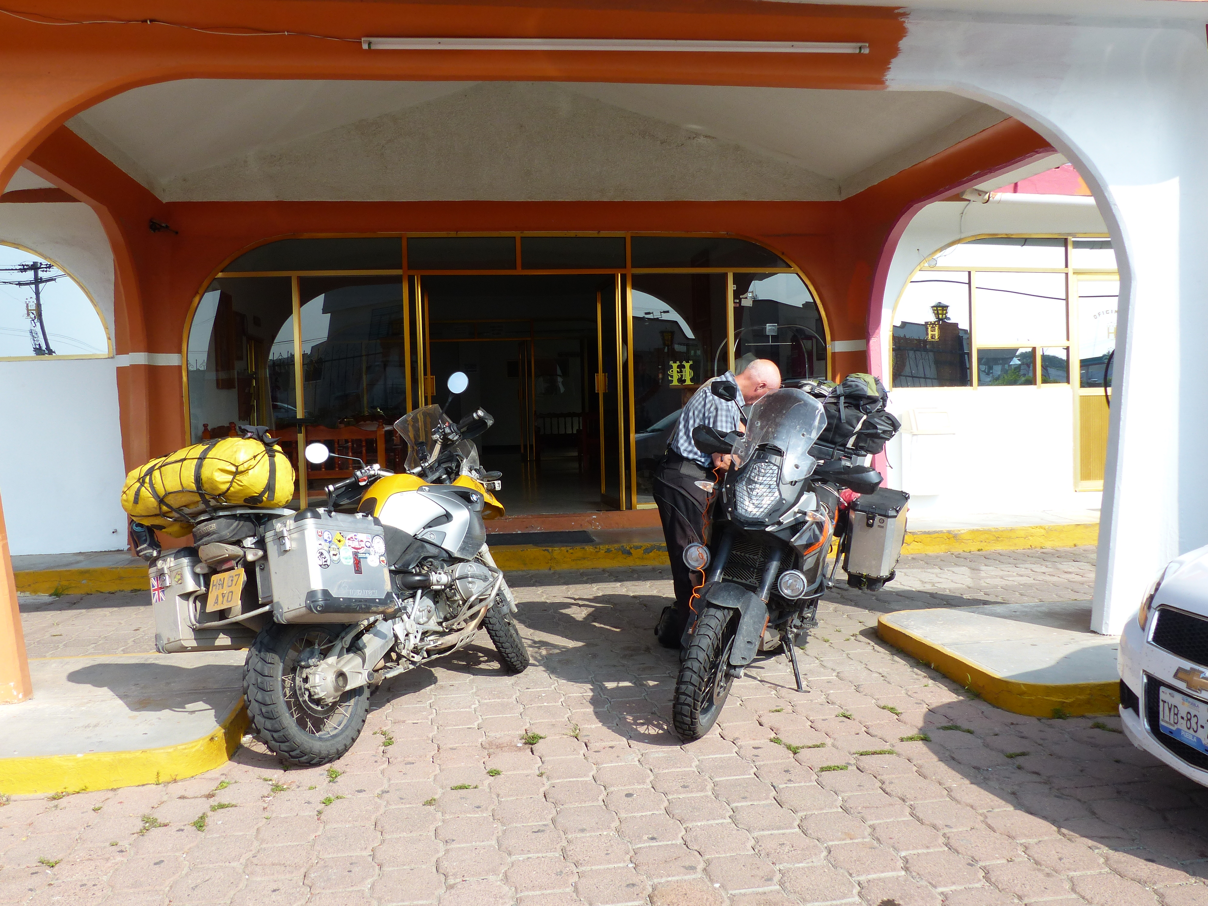 Then it was on to San Cristobal via a toll road which was incredibly busy…we were glad to get into town by 6:00.  We found a little hotel where we could park our bikes out front during the day and bring them into the lobby area at night We got caught up with the blog (last posting),bike insurance, banking, gps etc….which took up most of our time  as our wifi connection was poor as we ran into all sorts of bureaucratic issues.  On top of that there was a music festival going on in the square a couple of blocks away which didn’t shut down until about 4:30 am each morning…..needless to say sleep was fleeting.  By the time we left the city I was exhausted and feeling like I was coming down with something.  Sure enough in a couple of days I was flat out with the flu.