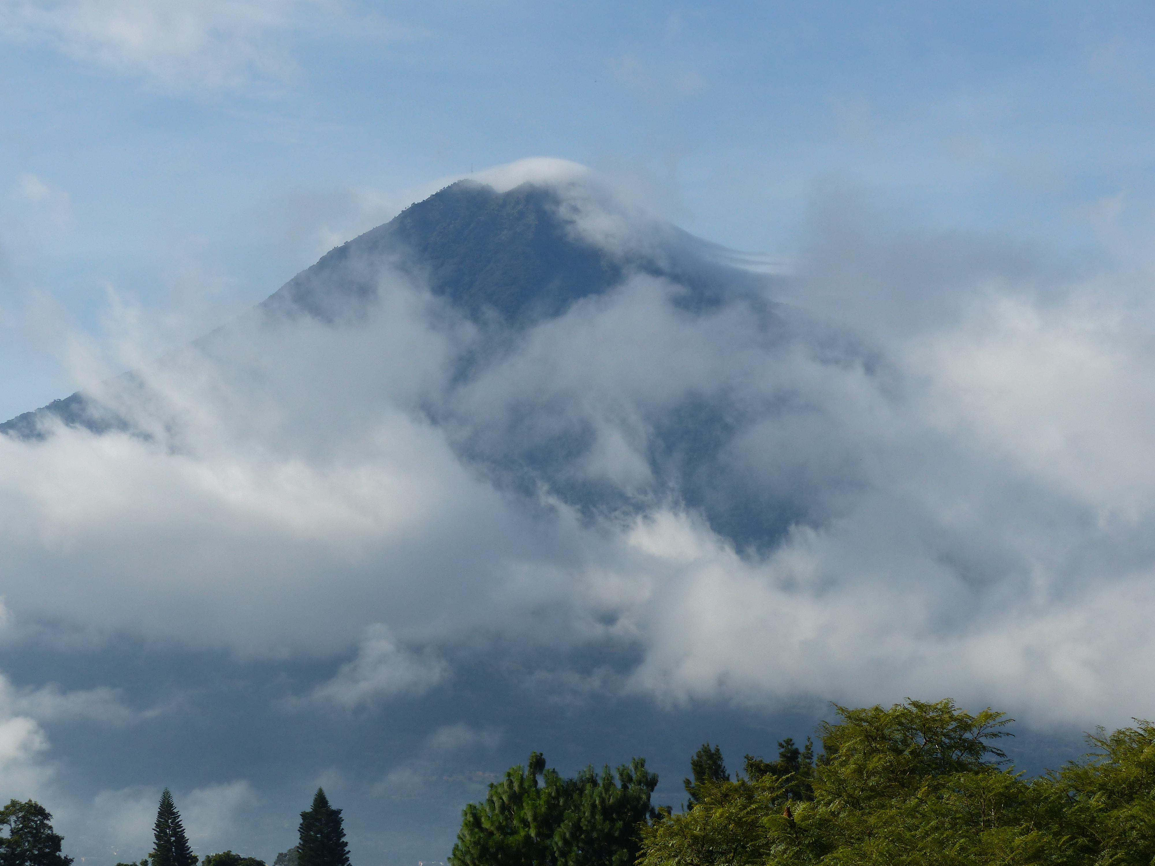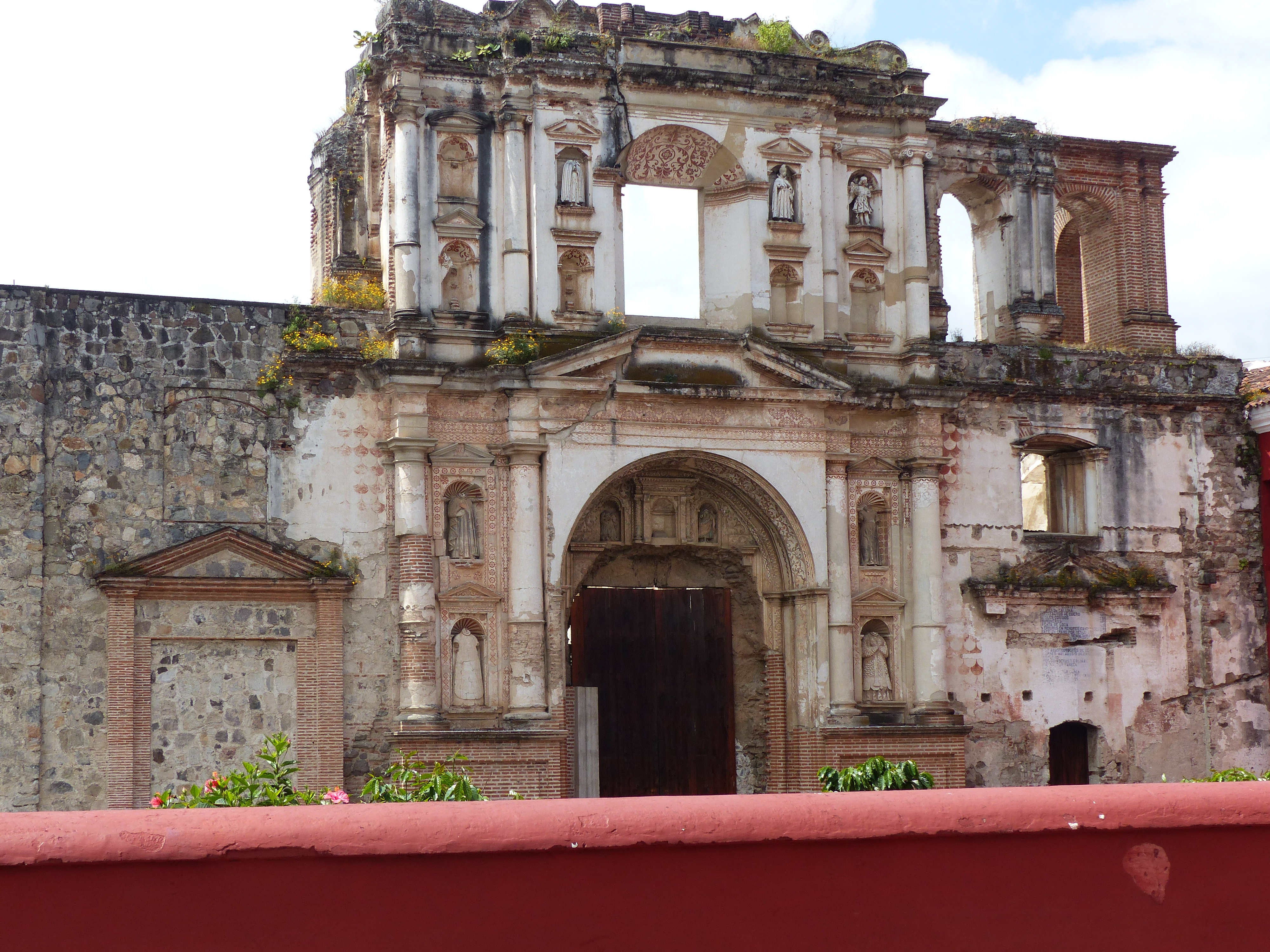 By the 18th we were in Antigua.  We stayed in a 500 year old hotel, the Candelaria.  The city is surrounded by three volcanoes…one of them active…..we got glimpses of them, but the clouds were around the tops most of the time.  Antigua is a very pretty place, and very cosmopolitan with many foreigners visiting, working or doing volunteer work.  It was Tom’s birthday while we were there and we celebrated by going out to Casa Escobar for a steak dinner.