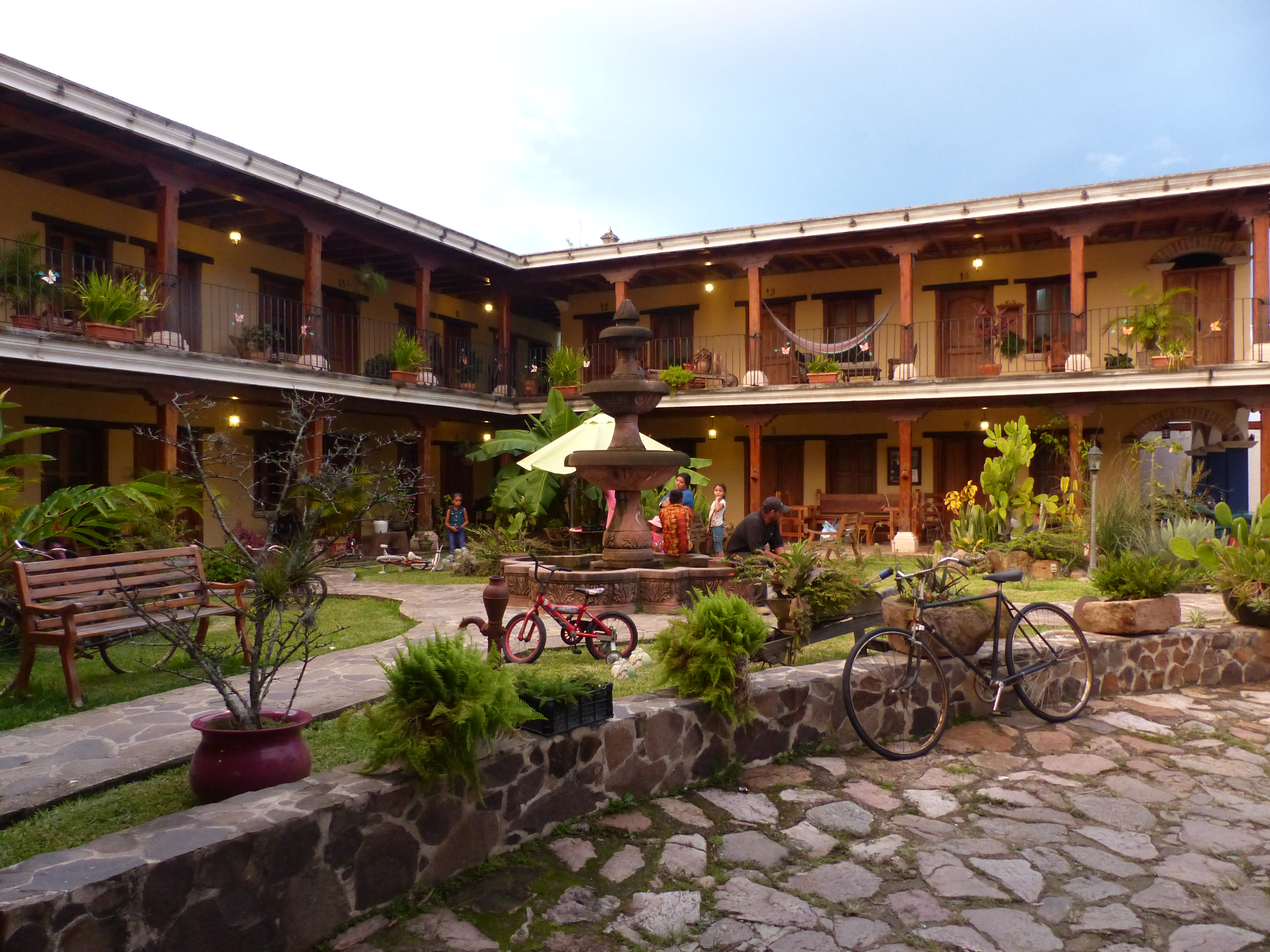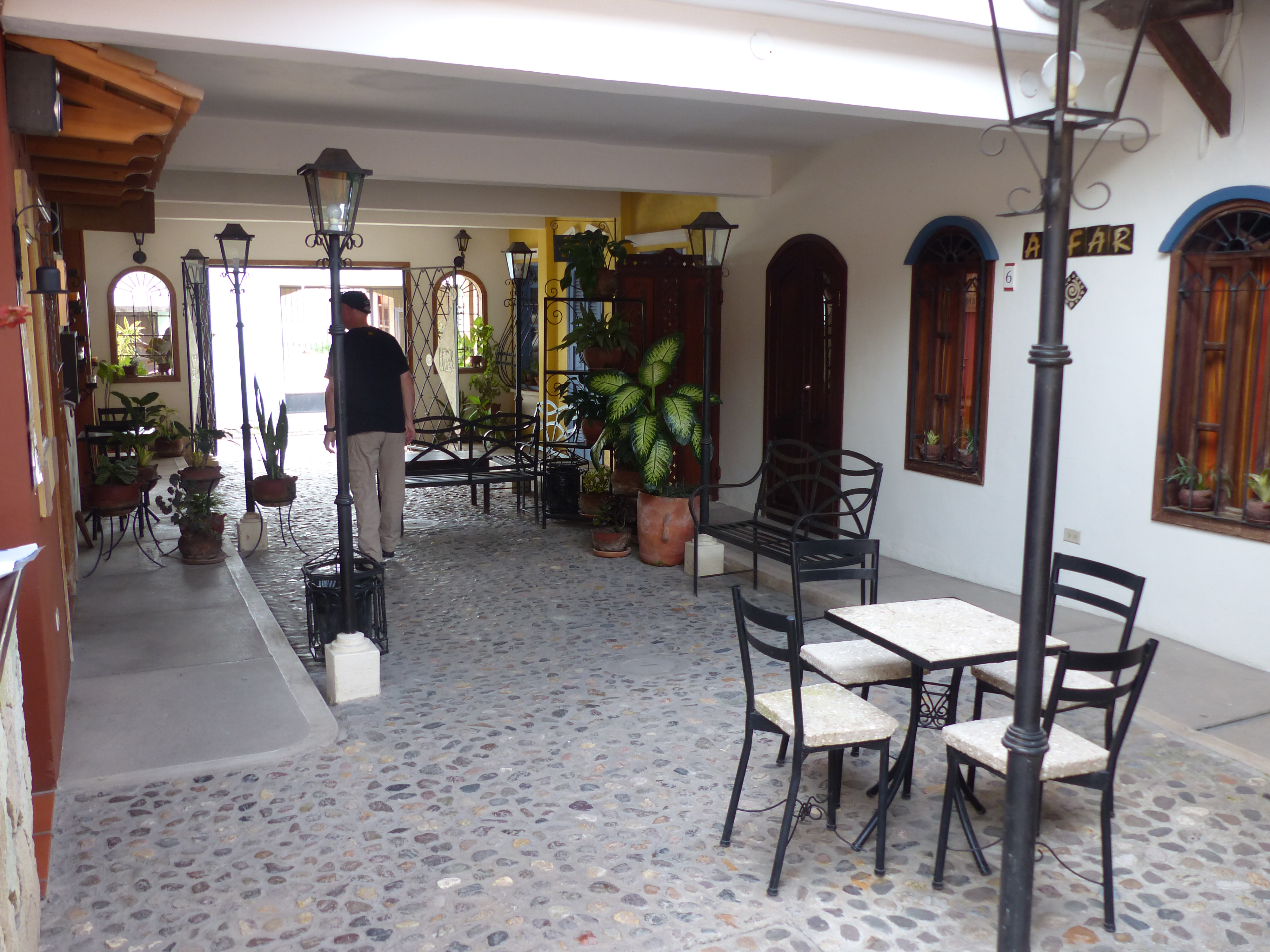After spending a few hours at the ruins we packed up the bike and made our way to Gracias.  Again a busy little town with heavily cobbled stone roads, crowds of people and hot.  We found the hotel we had planned to stay at after getting directions from some school kids…..but no secure parking….so we ended up at a hotel down the road with a great courtyard for the bikes and a great restaurant for us so we didn’t need to go back out into the streetts again that night.