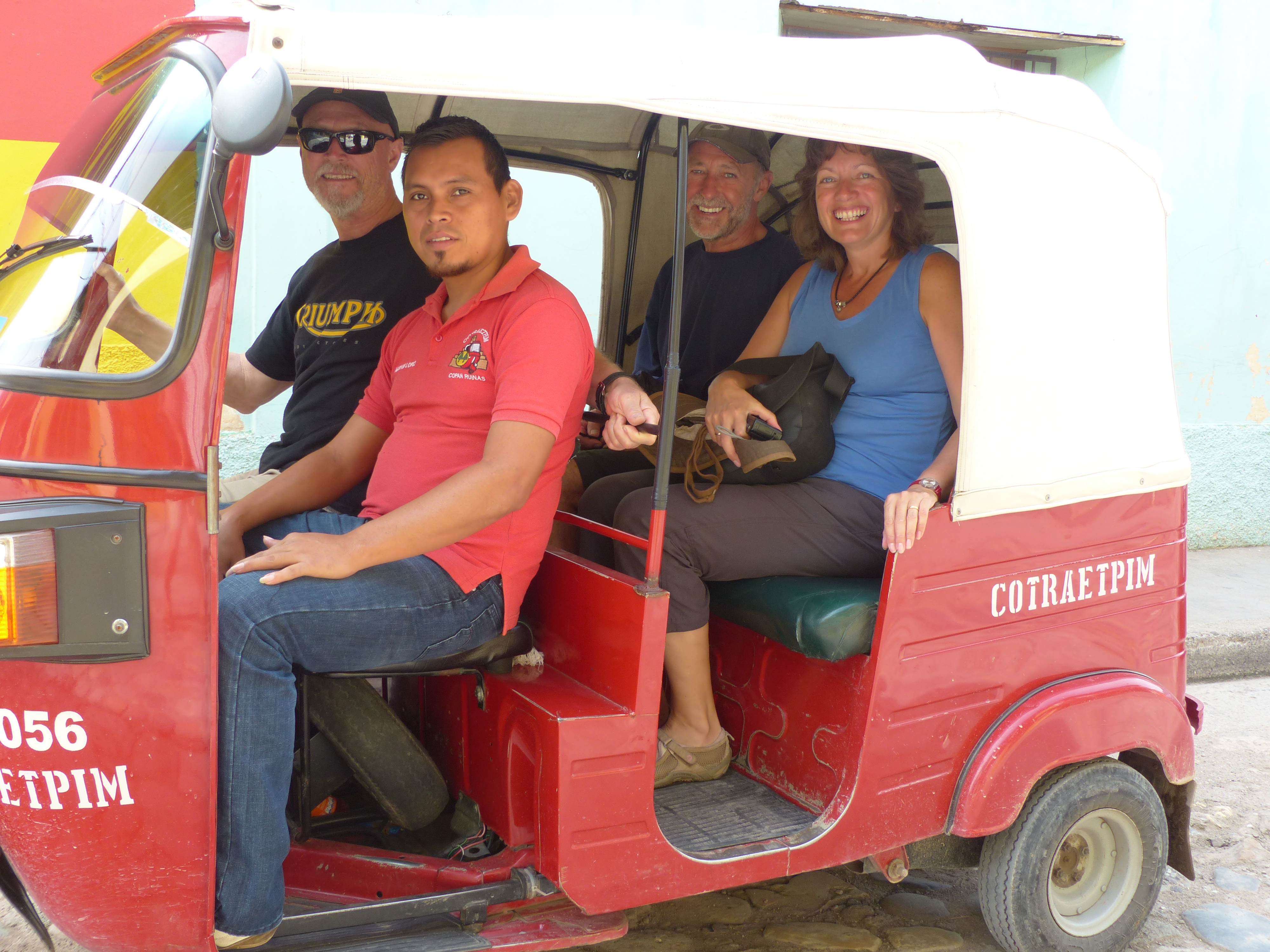 After another hectic border crossing from Guatamala into Honduras we were on our way to Copan de Ruinas.  It took us three hours to cross the border, again bringing the bike in was the issue….tons of paperwork….and again money changers, guys doing your paperwork for a ‘tip’, local bike insurance to purchase and standing around in the heat. Everything is done in duplicate or triplicate and carbon paper is the norm. Once you get through you are pretty much exhausted and dehydrated! Luckily Copan was only thirty minutes from the border.  Got there and with the help of Marvin the tuk tuk driver ended up at a great little  boutique hotel Yat B’alam.   It was now Lindsay’s turn to start feeling the flu coming on, so we took it easy for the rest of the day planning to take in the ruins the next morning.  Marvin arrived in the morning taking the four of us to the ruins in his tuk tuk. The ruins were spectacular and had a very natural contemplative feel being surrounded by beautiful foilage and wildlife, something that was lacking in Tithuacan..