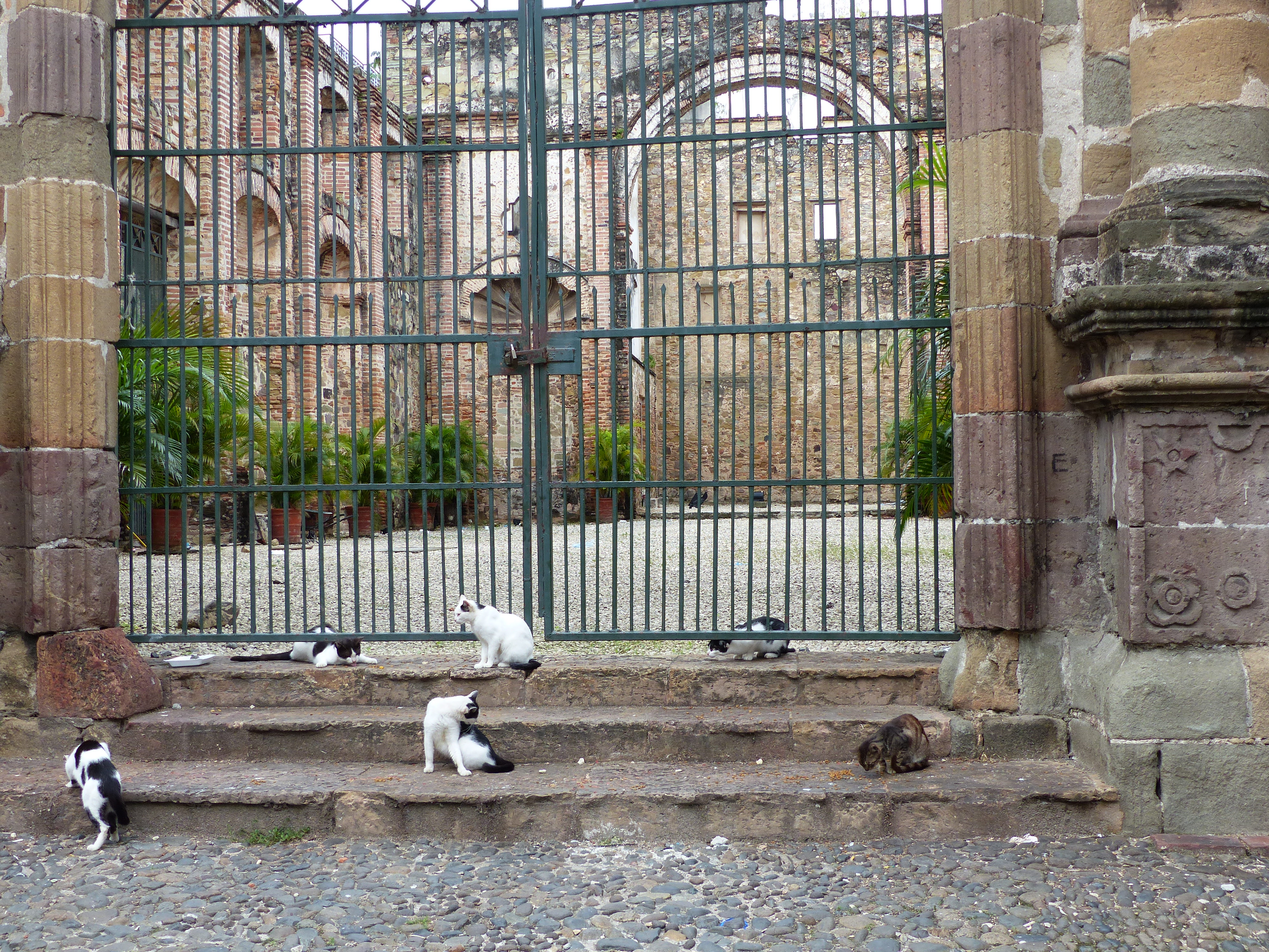 Breakfast, holiday Monday. Tom and Tracy have connected with their shipping contacts and have a number in Bogota we can call to get the process of having the bikes shipped started. Begin that process then organize our visit to the Miraflores Locks and the old city. Our timing at the canal turned out perfectly as we witnessed two large freighters navigate the locks. Then we visited Panama’s old city enjoying the historic architecture and lunch in the square. The old city seems to be emerging from the shambles and looks like it is going to become a beautiful area to live in and visit. On the whole Panama seems to be emerging aesthetically, lots of construction and renewal.