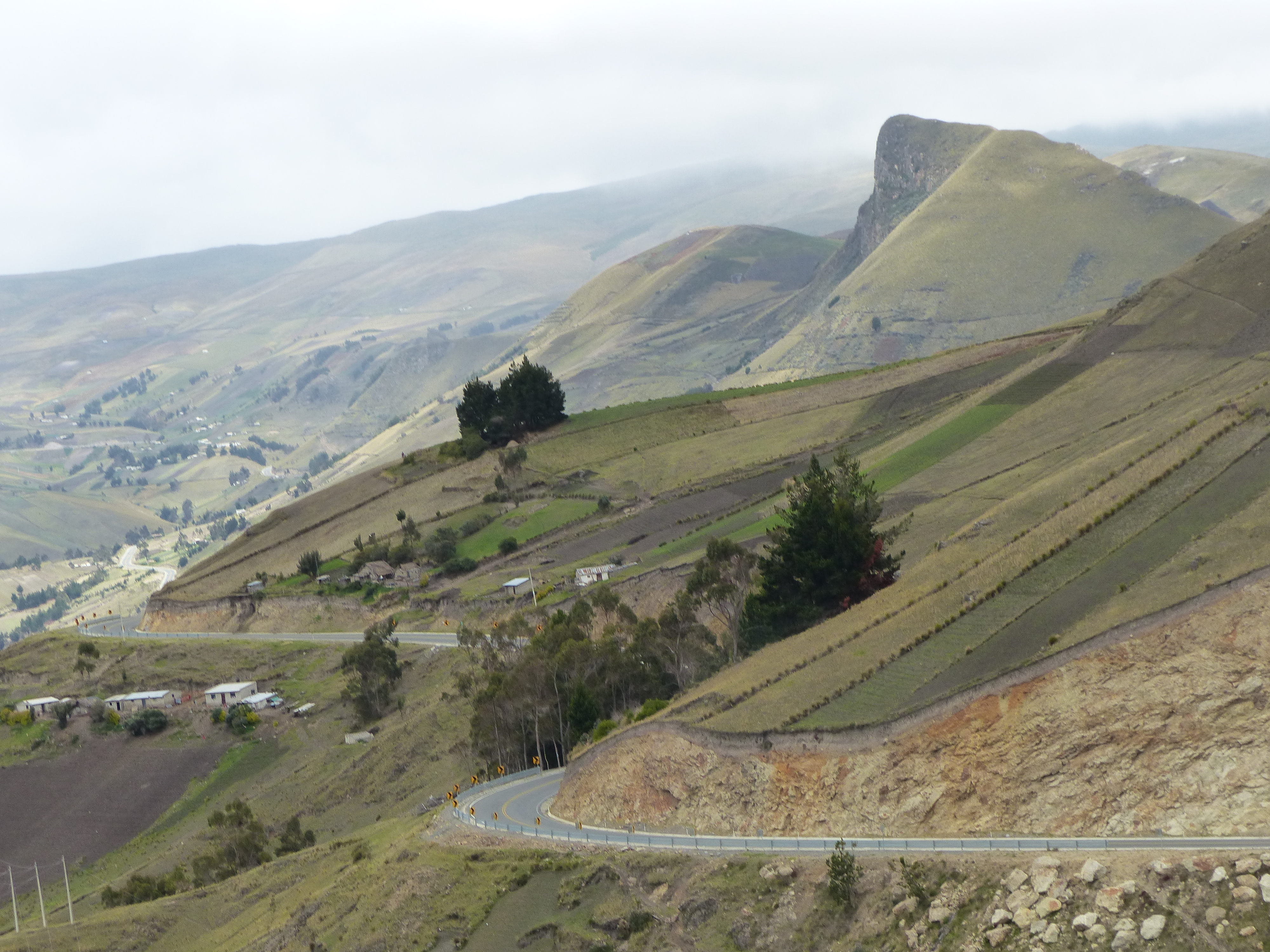 Through the pass in Rerserva Ecologic Los llinzes we reached altitudes of 13,180′, our highest pass so far. We had views of beautiful cultivated terraced lands. The rudimentary enclaves of inhabitants dotted the landscape and left us wondering how they keep warm and where they get their cooking fuel from living in such isolated circumstances.