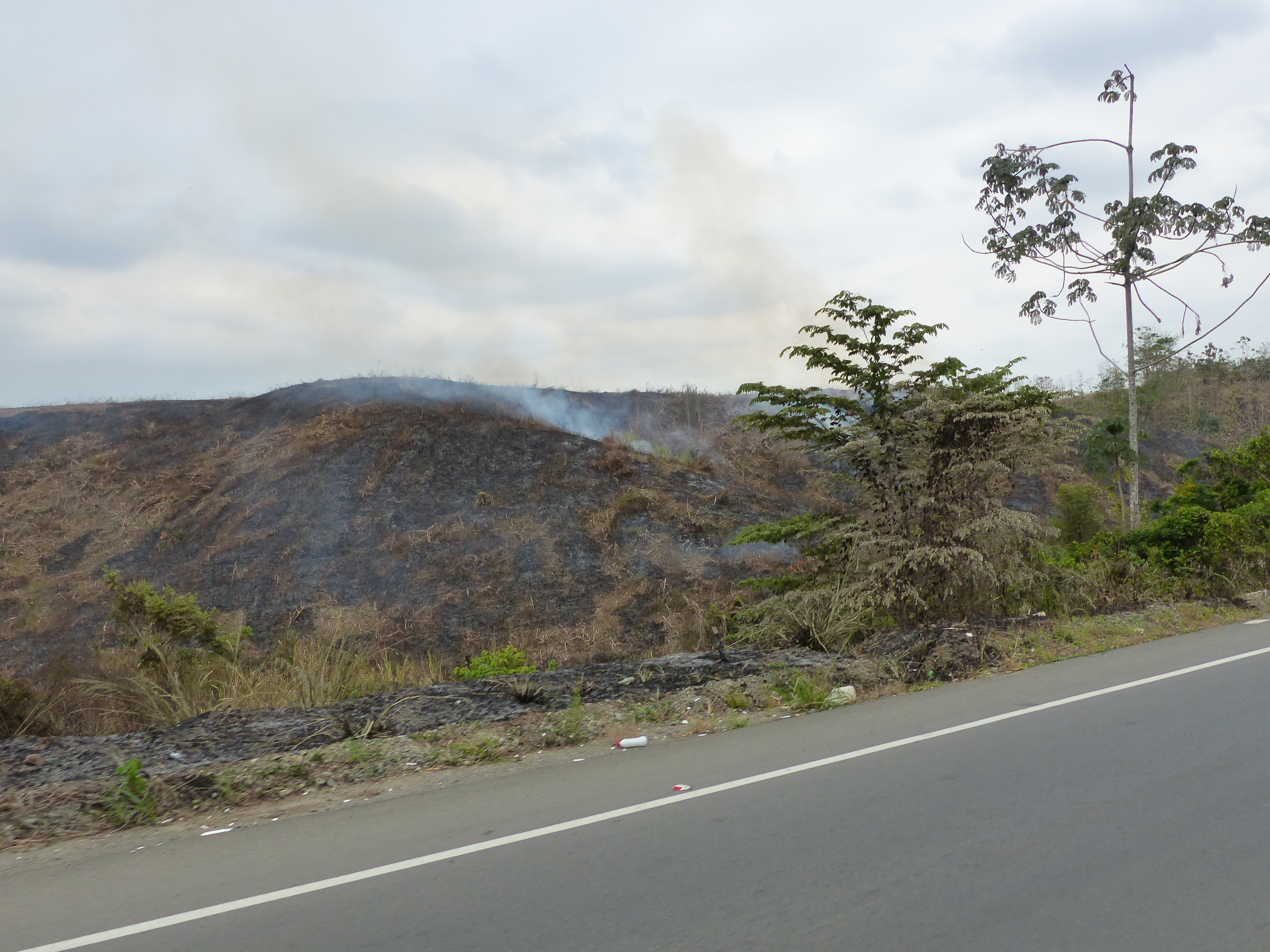 En route to Puerto Lopez on the coast we weren’t prepared for the dry and burnt landscapes that would greet us. It was the end of the dry season and there was a lot of agricultural burning going on giving a grey hue to the already monotone landscapes.