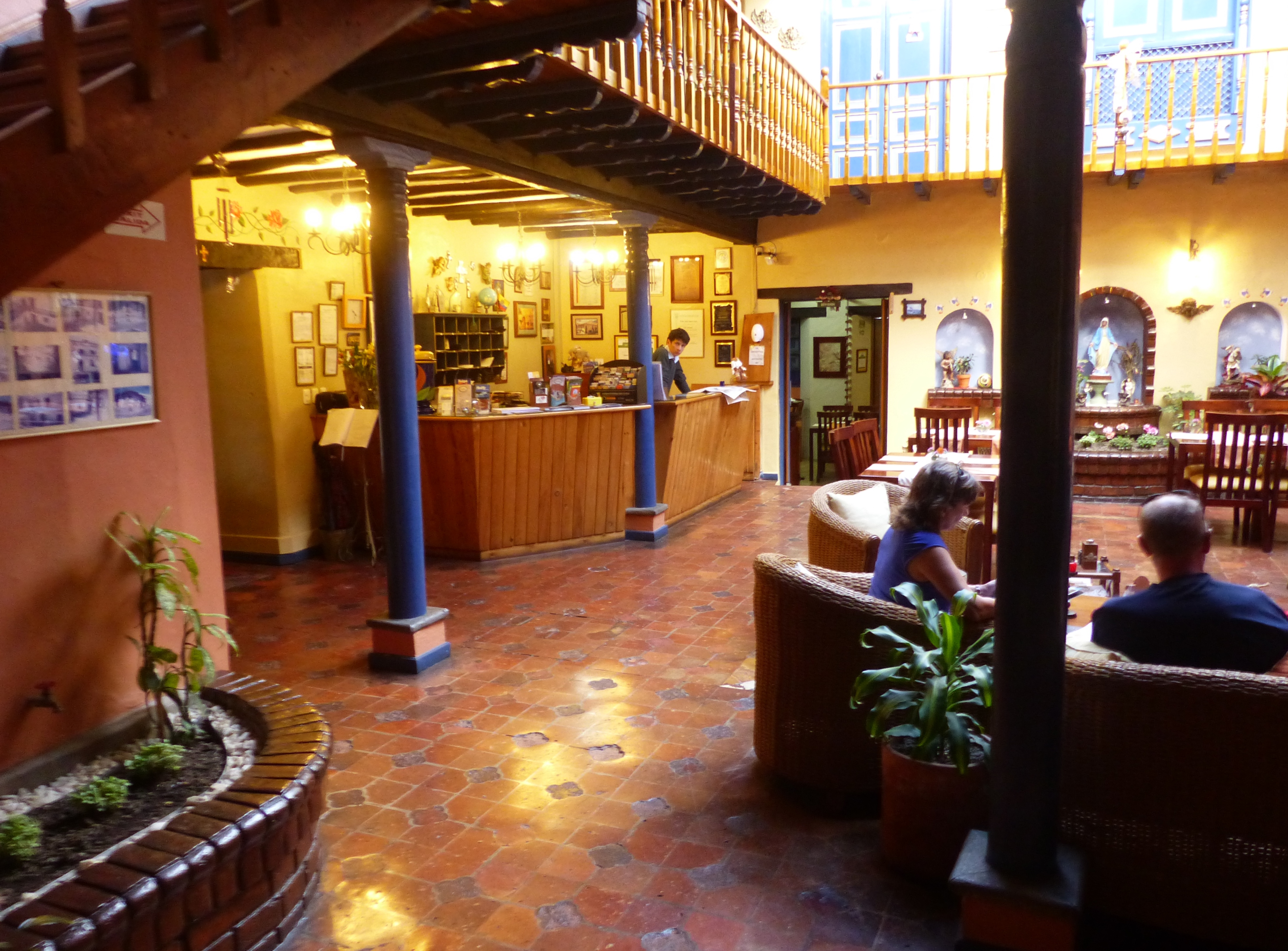 Arriving at our hotel in Cuenca. The owners of the Hostel Posada de Angel were kind enough to let us park just at the back of their breakfast areas as they had no other parking for the bikes!!