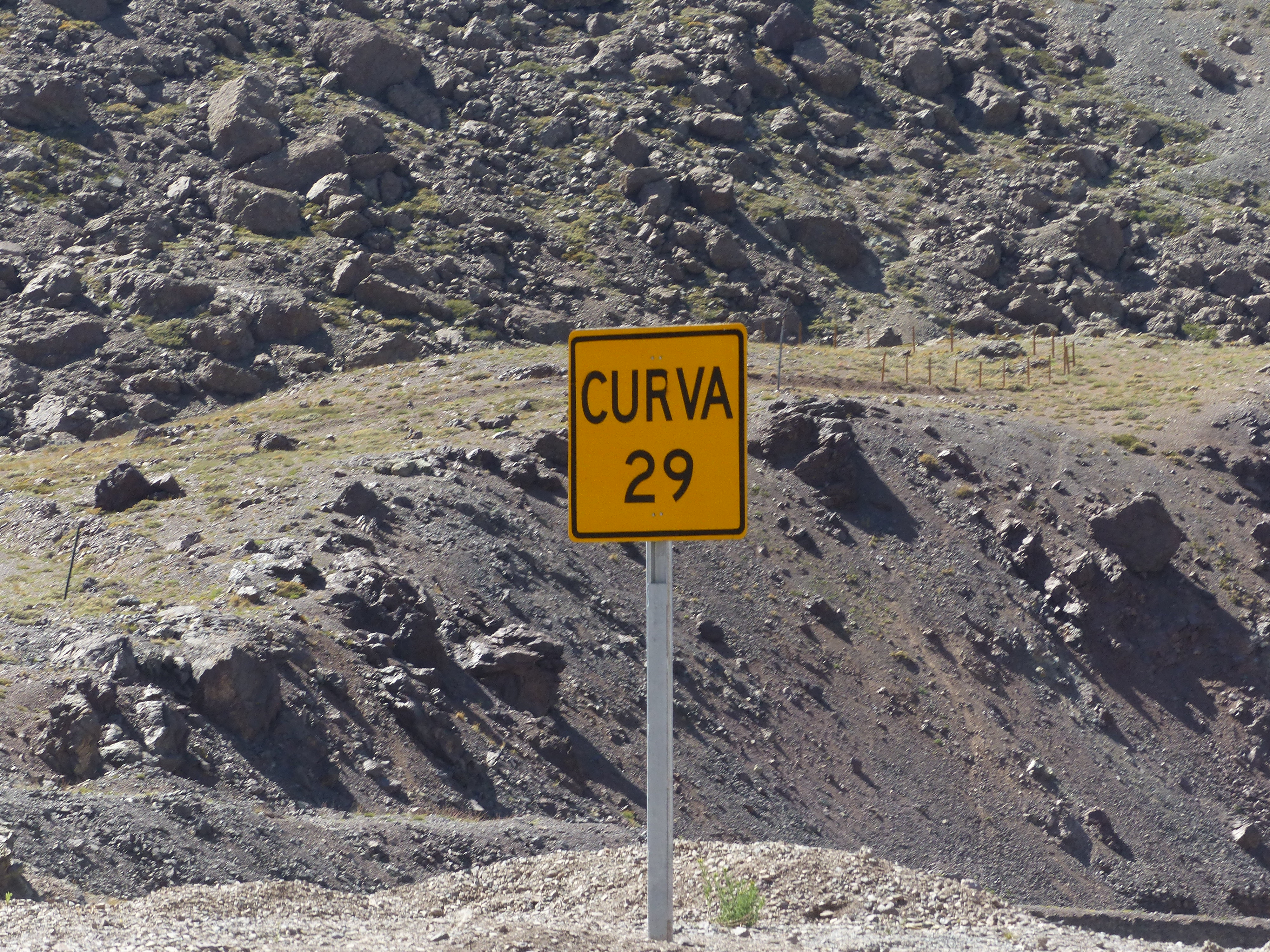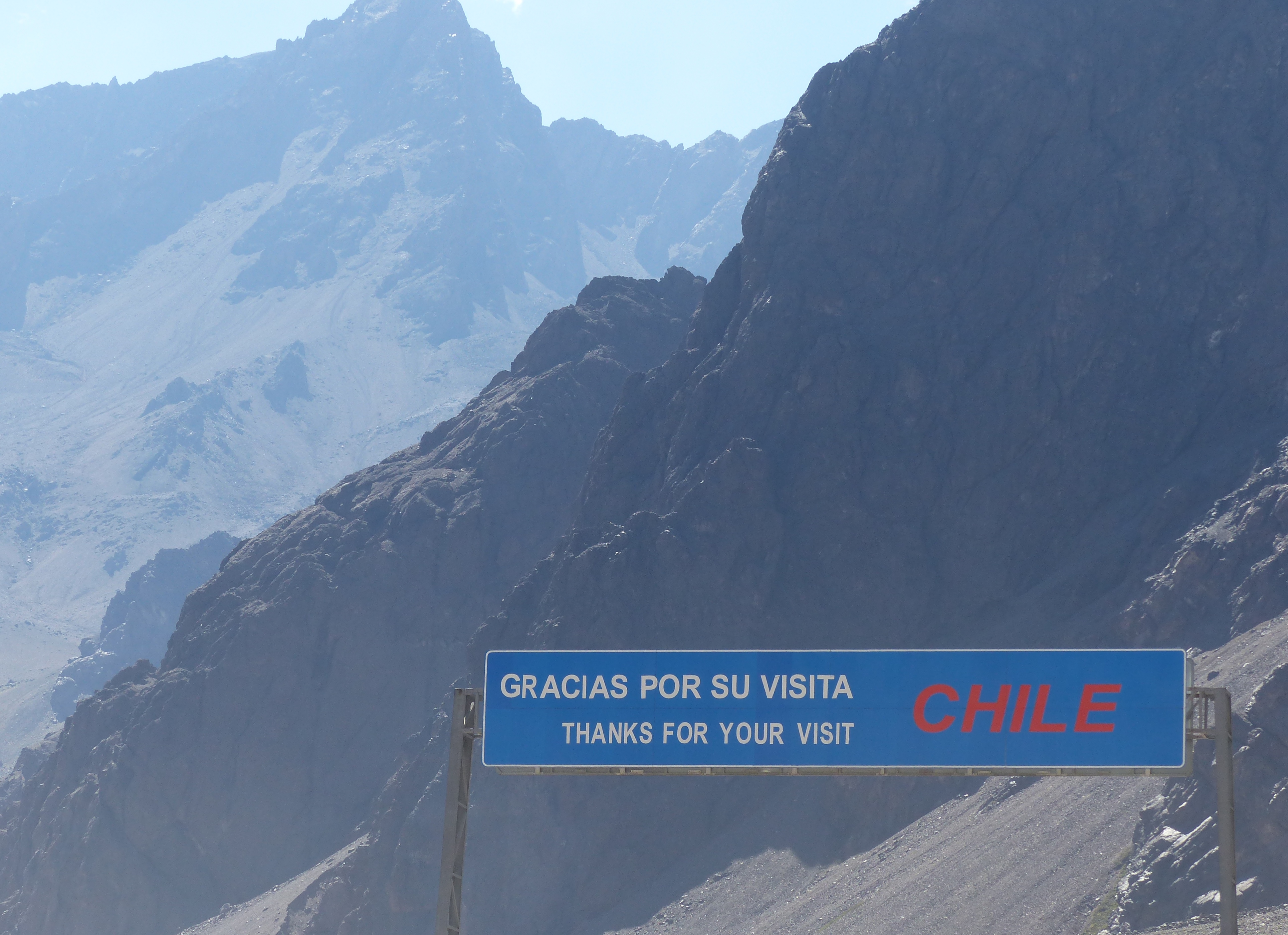 Lindsay and I crossed from Chile to Argentina on Jan 17th leaving the beautiful wine region of Los Andes, Chile behind and climbing through the Passo de la Cumbra with it’s 29 switchbacks (numbered), into Aconcagua National Park and into the lineup at the border crossing.