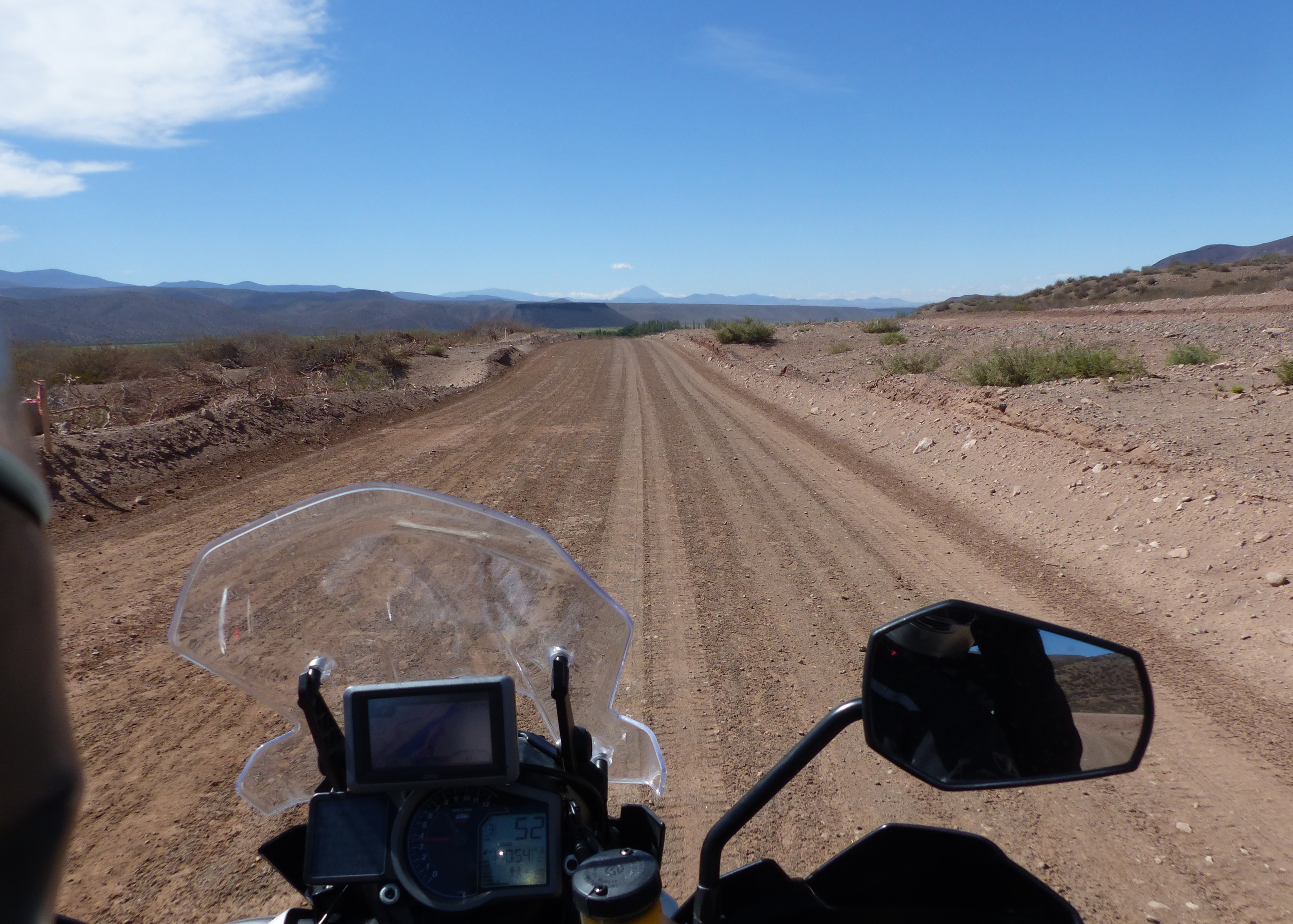 The following day found us on gravel for about 100km of the ride to Chos Malal. The first 40km was a construction zone, our least favorite type of surface as it is generally thick gravel that has just been laid to create a new detour, leaving a very loose driving surface. This was accompanied by winds. Fortunately the last 60km was a typical gravel road, much easier riding with the exception of the washboard being hard on the bike. It was nice to get back onto ashphalt.