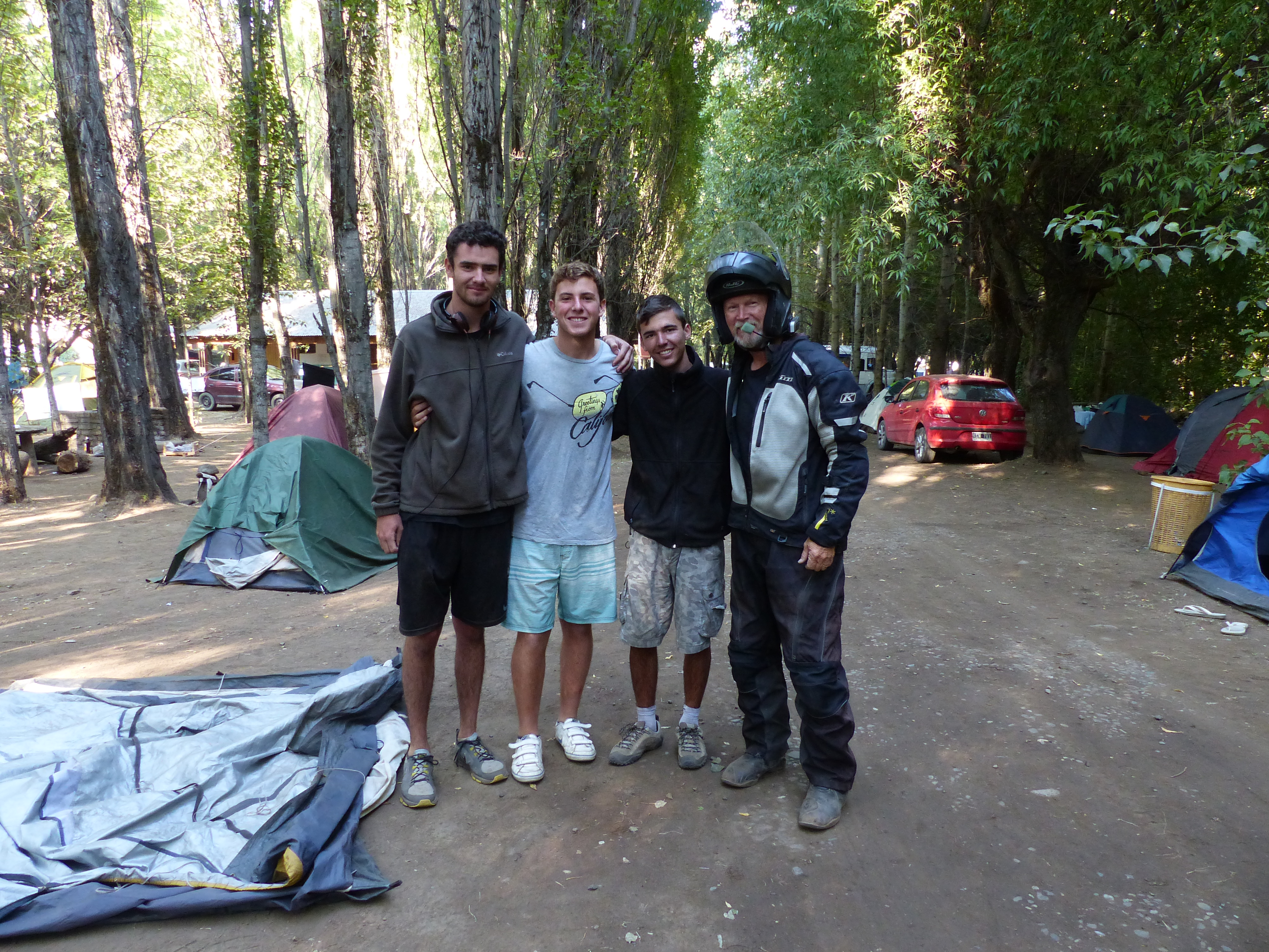 Lindsay went into town to see if he could get a new tent, but they only had the the sleeve design. So after some thought we decided it was early enough to get back on the bike and make our way to Bariloche to see if we could find a tent there. We were literally blown into town , the winds were howling off the lake . We found our way to the town center and started our search for a tent. Well we lucked out. Lindsay, through a few karmic contacts. was directed to a sport shop, Garmont, where there was a possibility of buying the replacement posts for the tent. It turned out that the shop didn’t have exactly what we needed, but the owner, Santiago, assembled a whole new frame for us. He was incredible. So we were back on the camping trail while riding through the Lakes District.