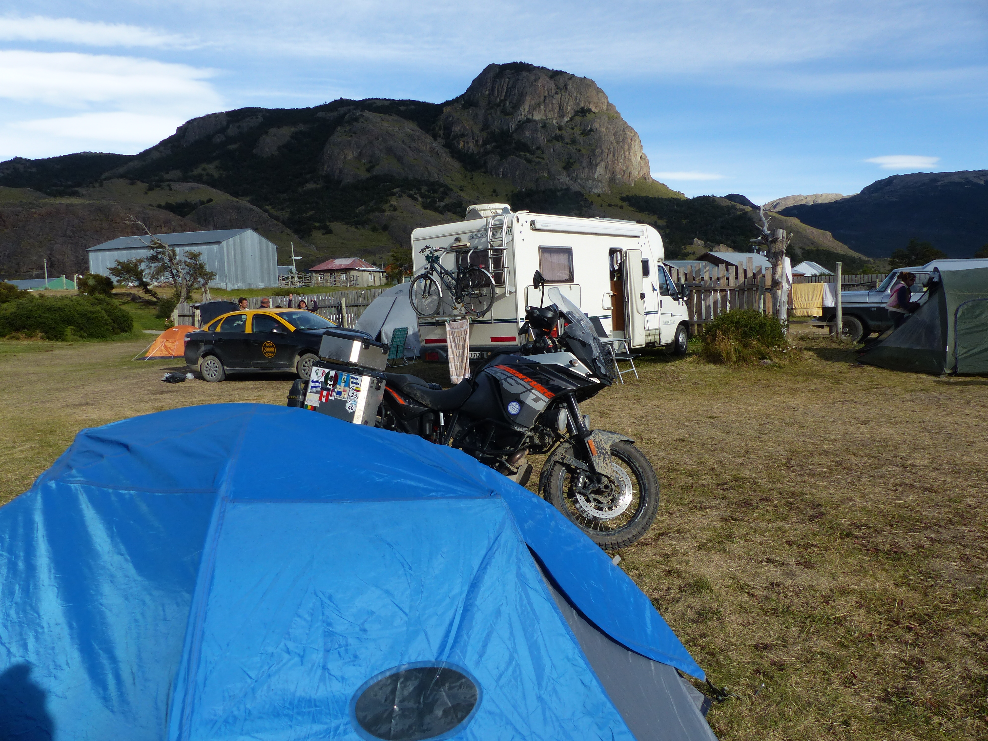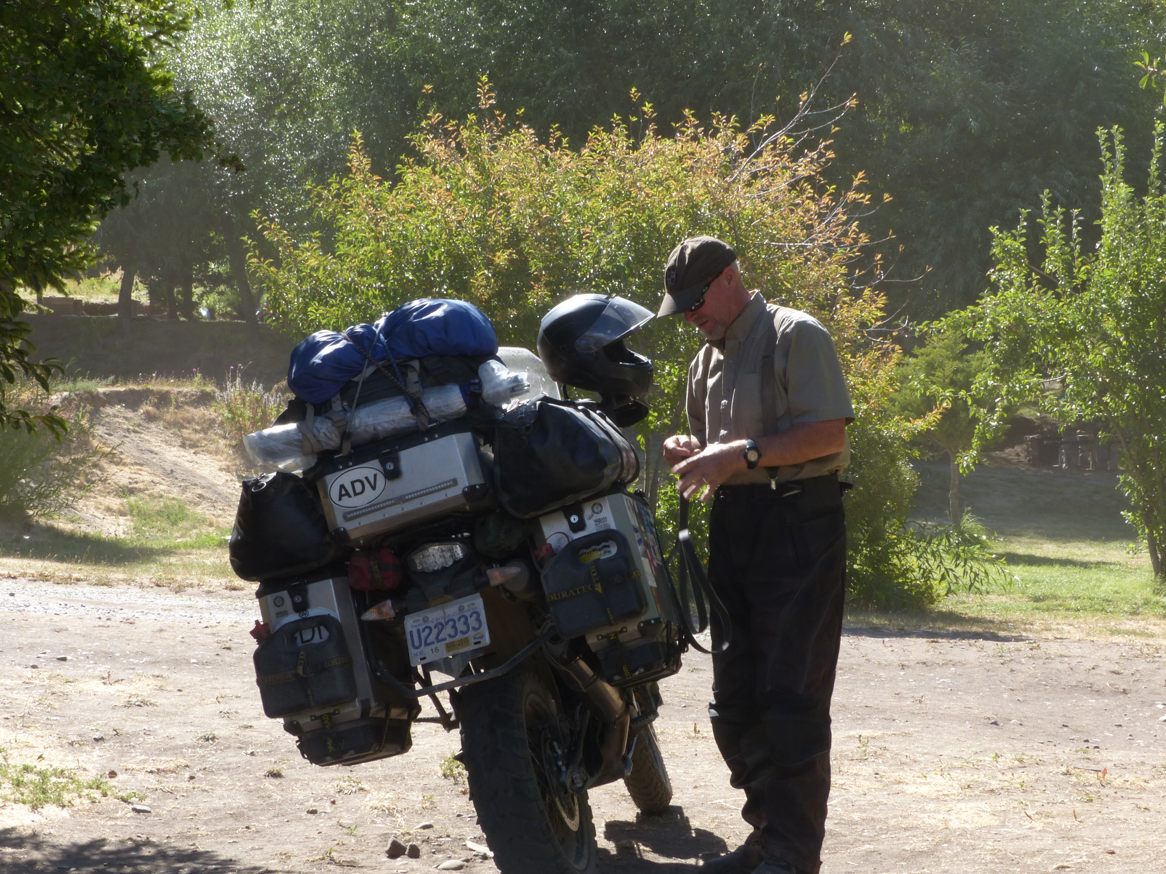 Got into Villa Angastura and checked into a campground, only to find that our tent poles had been lifted from our bike. I know, you are thinking we probably forgot to pack them, but we checked our morning departure photos and they were strapped onto the bike. Unfortunately we did not have a clear line of vision to the bike when we had breakfast in San Martin that morning, and we think that whoever pulled them off the bike didn’t know what they were getting and just took them because they were accessible.