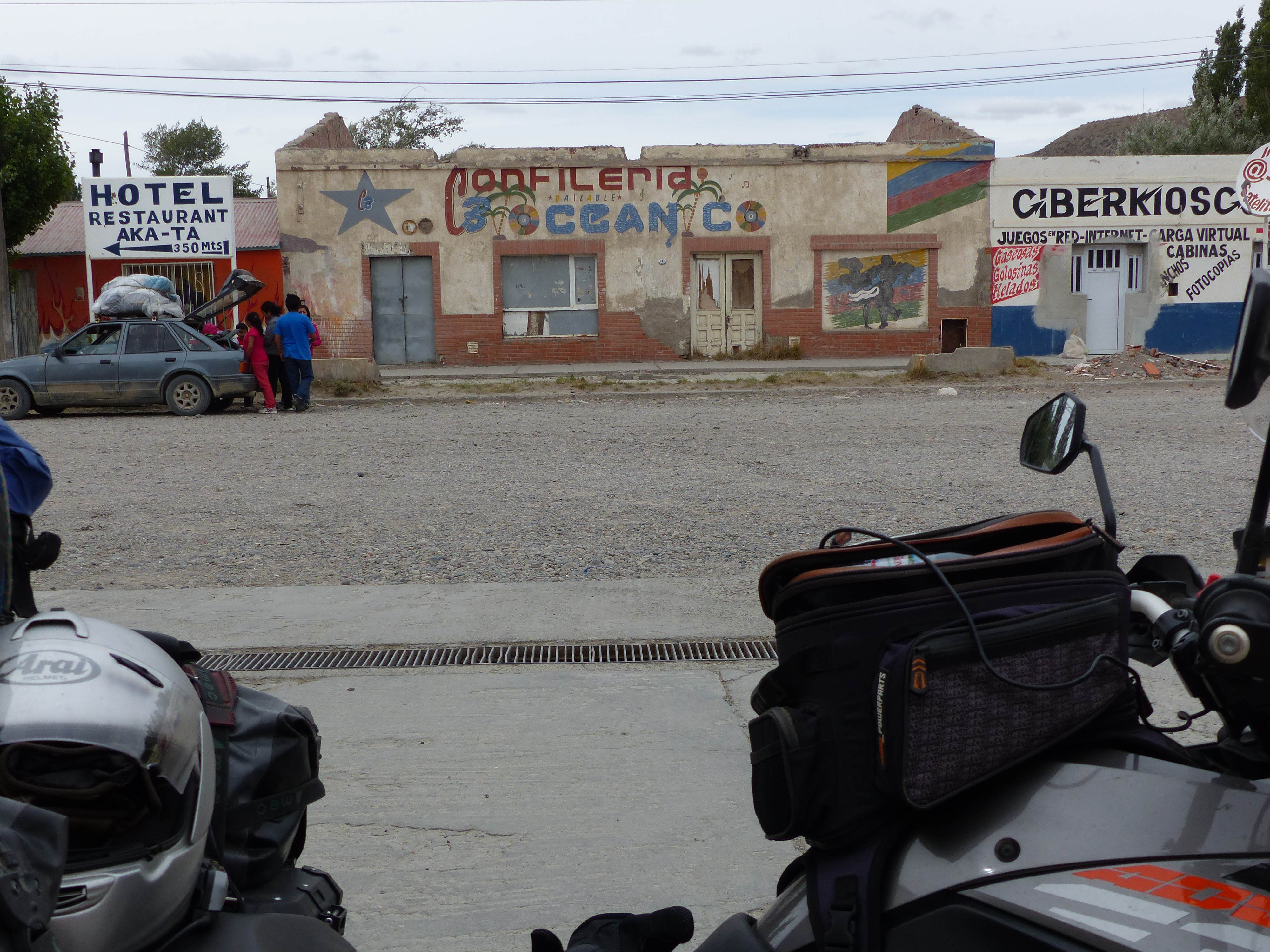 No photos of the campground, but they too were run down and inhospitable looking. So we decided to ride on to Perito Moreno. This time we lucked out with road conditions as we were expecting about 100km of gravel, only to find the highway paved after the 3km gravel exit from Rio.