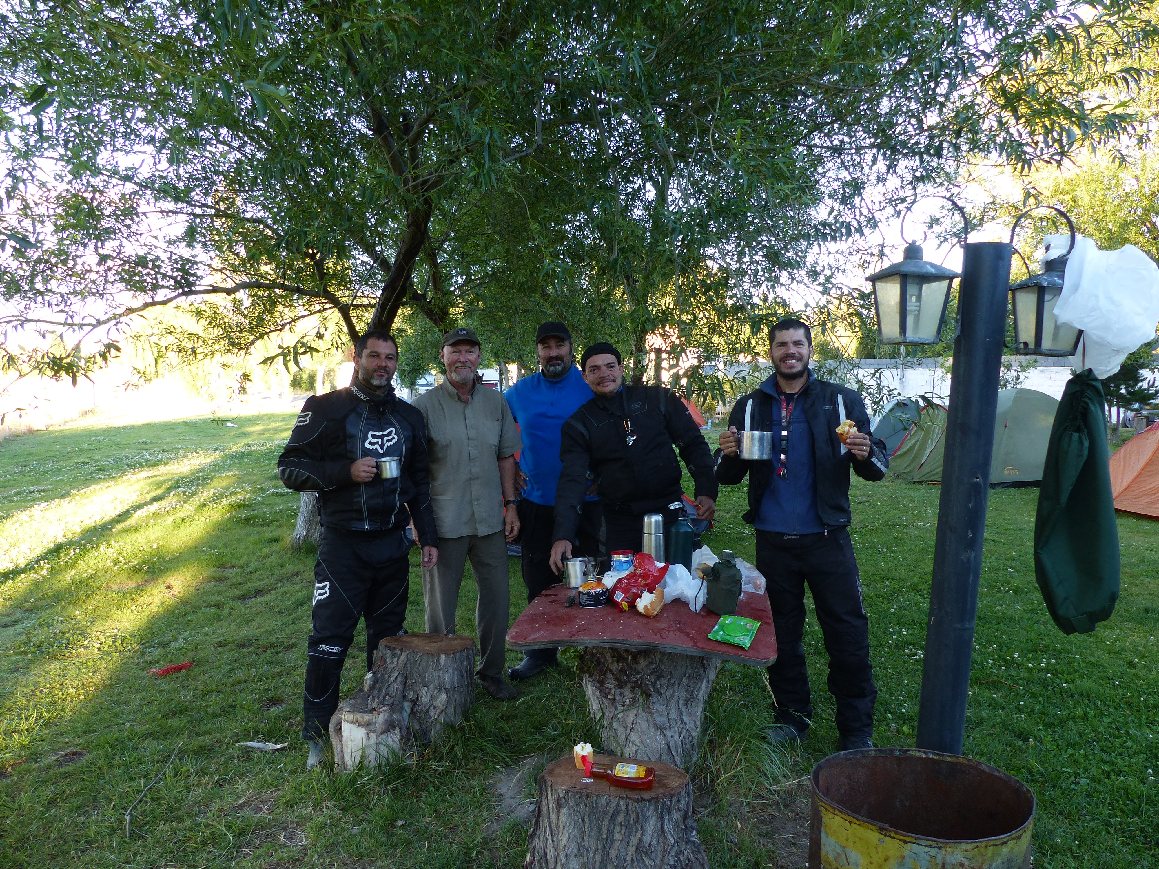 Found a good municipal campground in Perito Moreno, winds were still our friend and there was a religious celebration going on in the outdoor common area with lots of singing and story sharing. We got the tent set up and picked up a few snacks for the evening meal. While we were settling in a group of Brazilian riders rode in. Soon after Lindsay was sharing information with them.