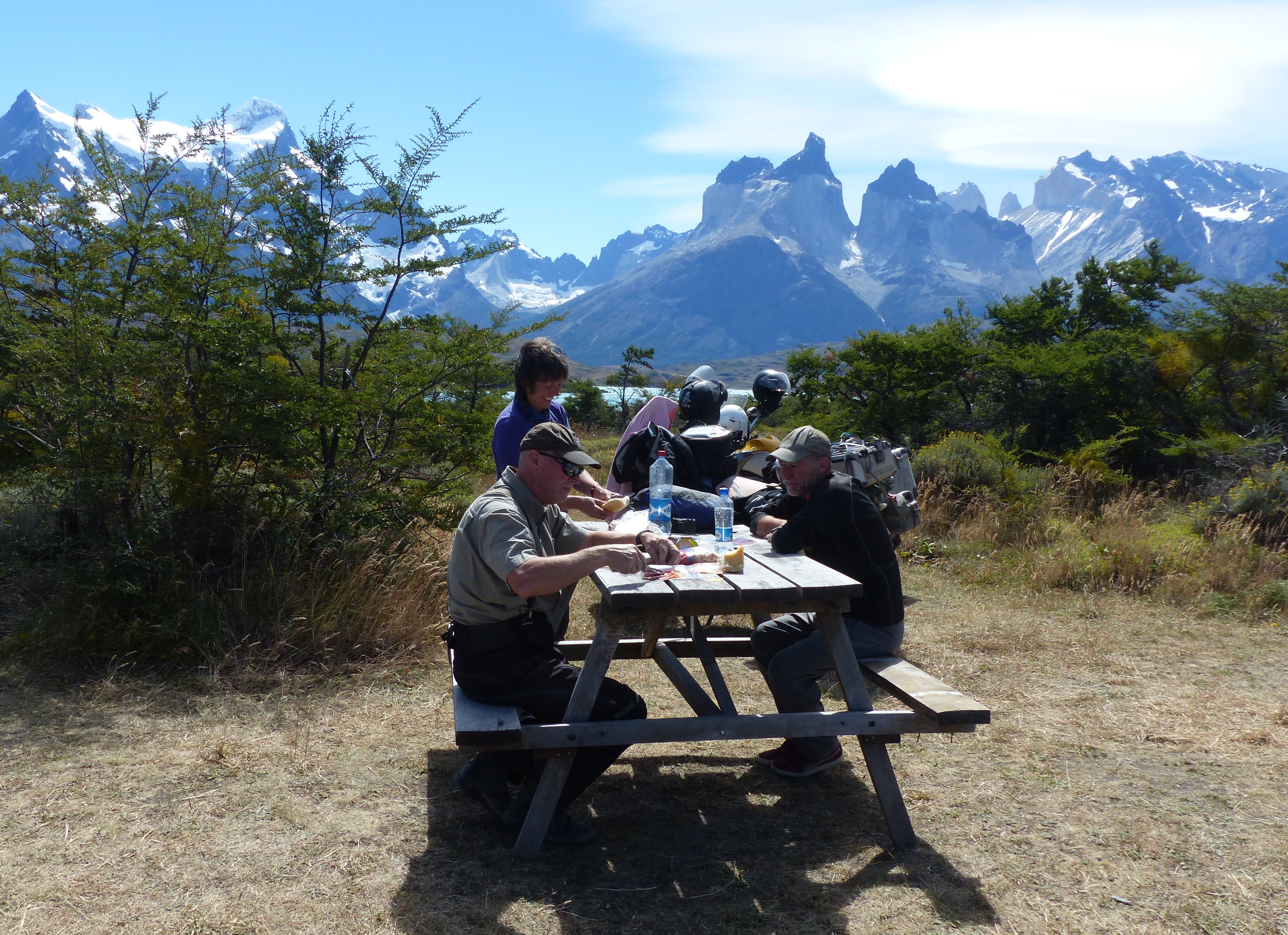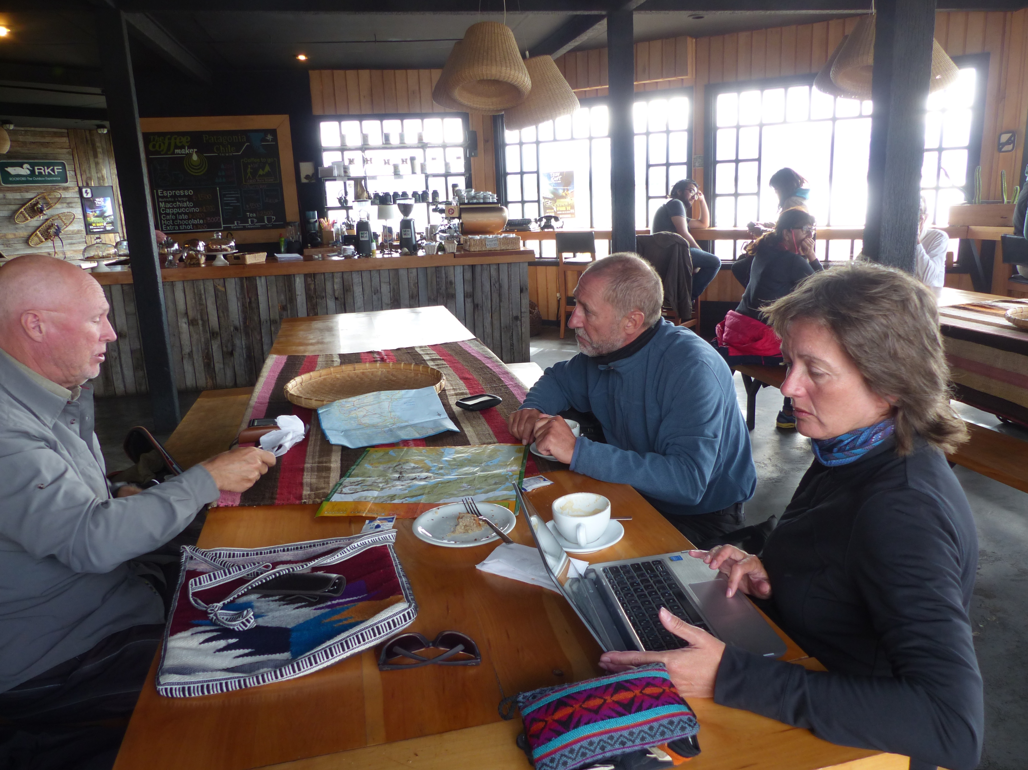 We set off for Punta Arenas to catch the ferry for Tierra del Fuego. That evening in Punta Arenas as we were entering Sorito’s, a restaurant recommended to us for dinner, we noticed Klaus sitting at the head of a long table with the tour group he was driving the support vehicle for. As we approached him to say hello, to our astonishment, sittting beside him was Dave Highton from our home town! What a great surprise to see such a familiar face and once again proving what an incredibly small world it is. It was wonderful to run into you Dave. Hope the rest of your journey was amazing. We look forward to sharing stories.