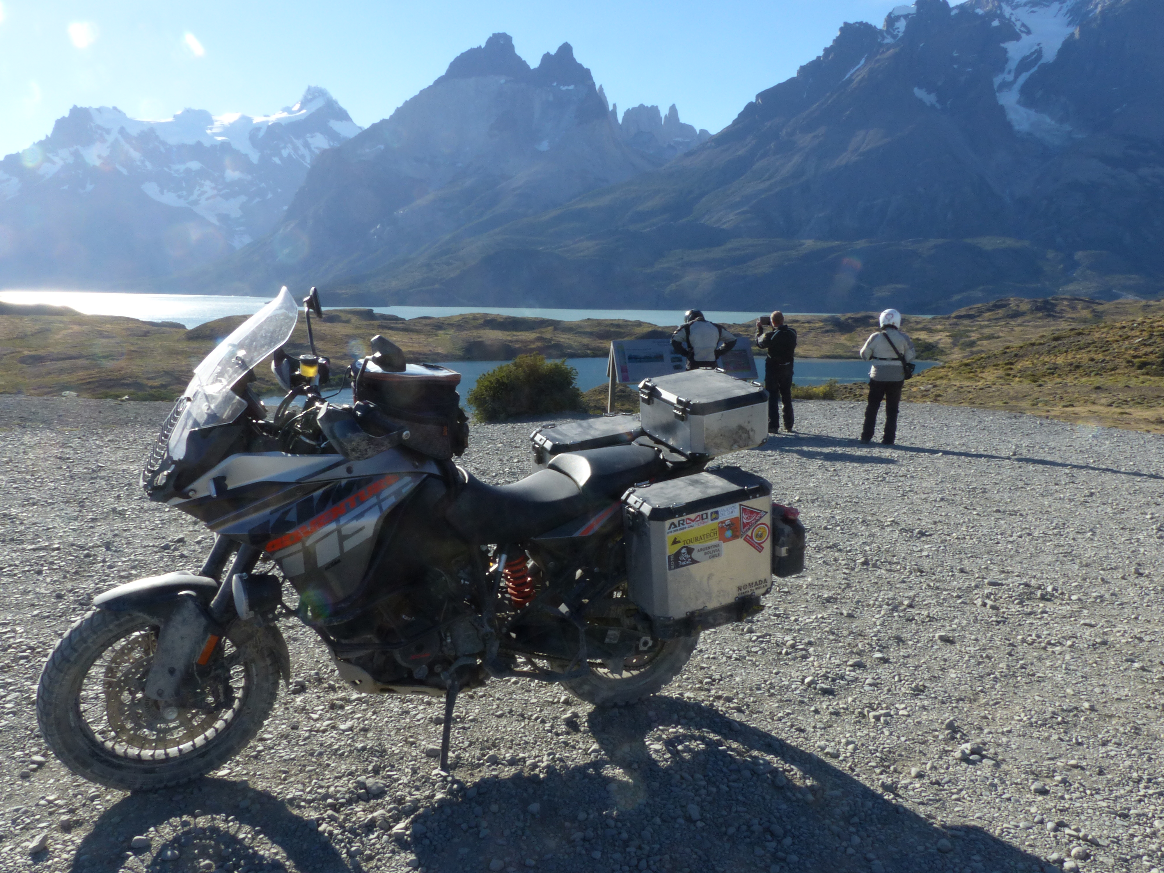 After two weeks on our own, Tom and Tracy caught up with us in Calafate, nice to be riding together again. The next morning the four of us departed to Torres del Peine Park in Chile. The ride to El Cerrito was relatively easy as we were on asphalt, but the strong winds that Ruta 40 is notorious for continued. After Cerrito it was rippia (gravel) all the way to the Chilean border with no rest from the wind.