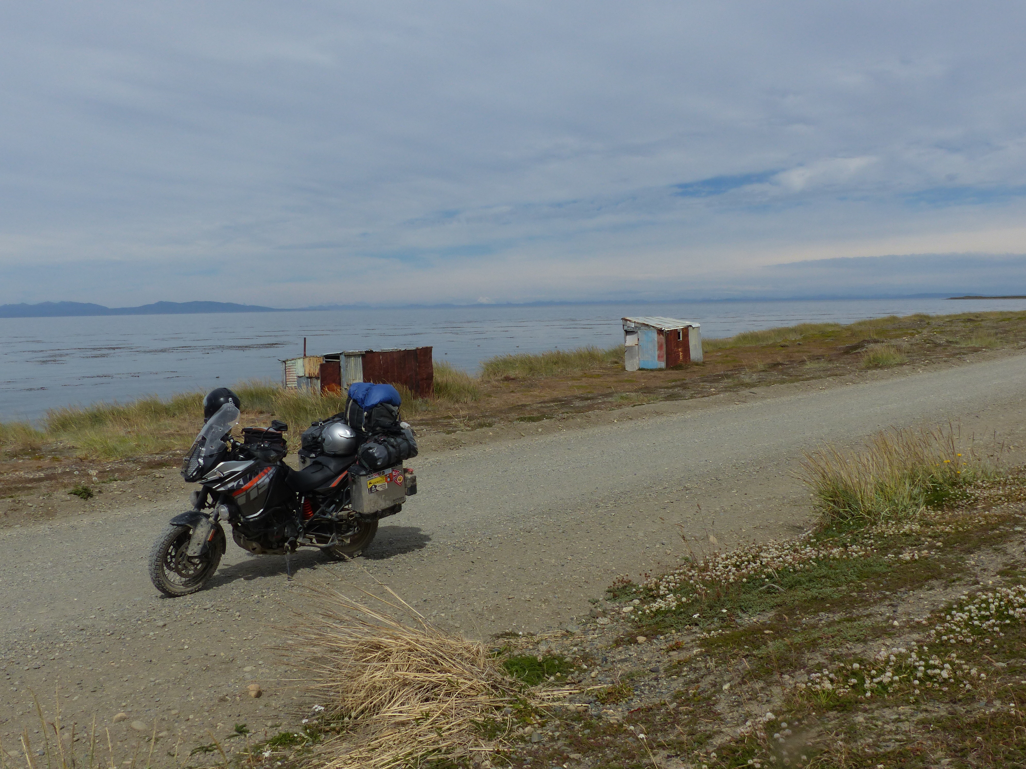 After 200km of dust we crossed back into Argentina. Our destination for the day had been Rio Grande, but when we arrived all the hotels were full due to a convention!!! By the time we had looked into all the accommodation options in Rio it was 6:30 pm, but we had light on our side being so far South. We made the decision to ride the 225km to Ushuaia that evening.