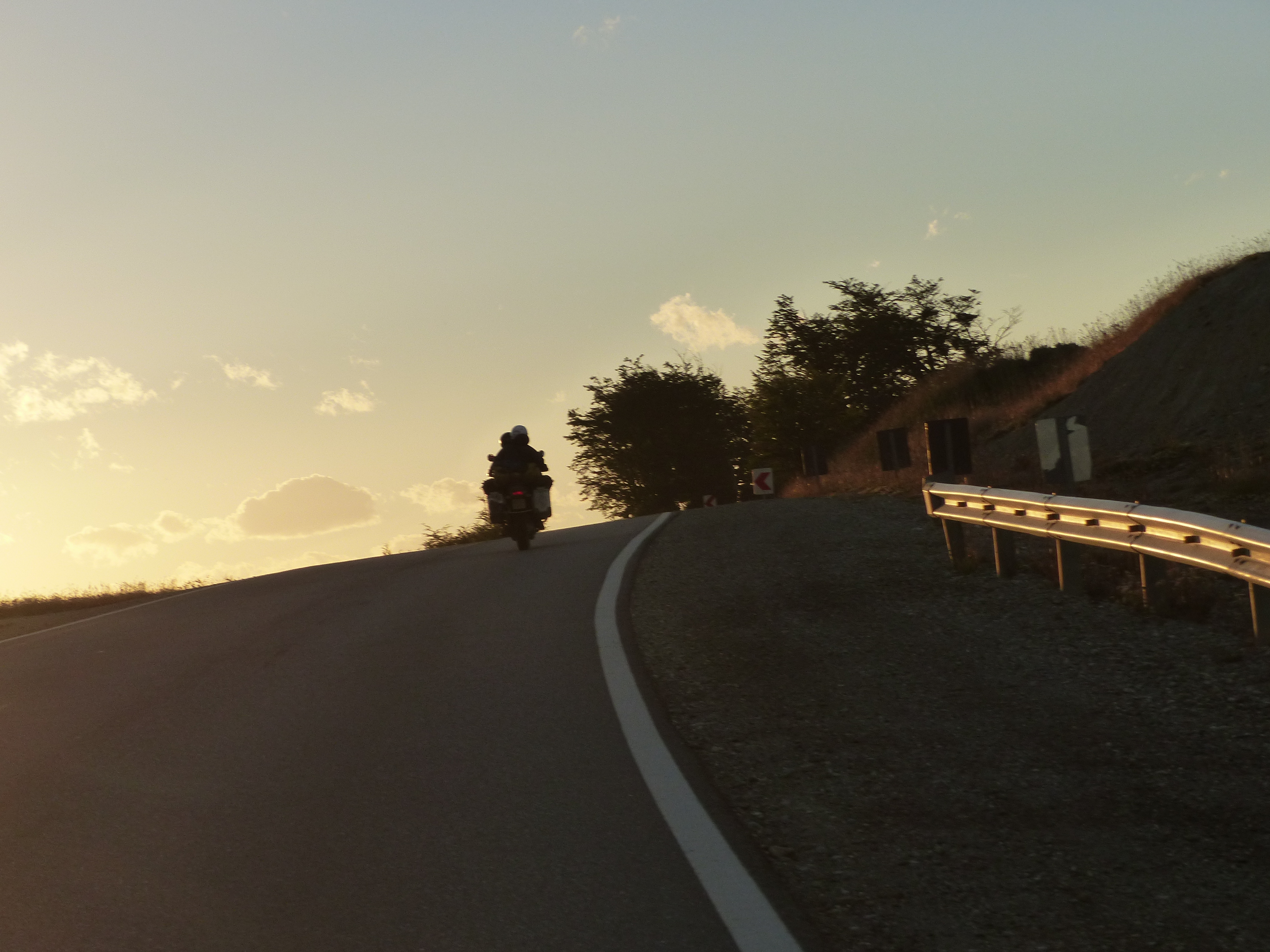 We were greeted with a great road, beautiful vistas and a watercolor sunset.