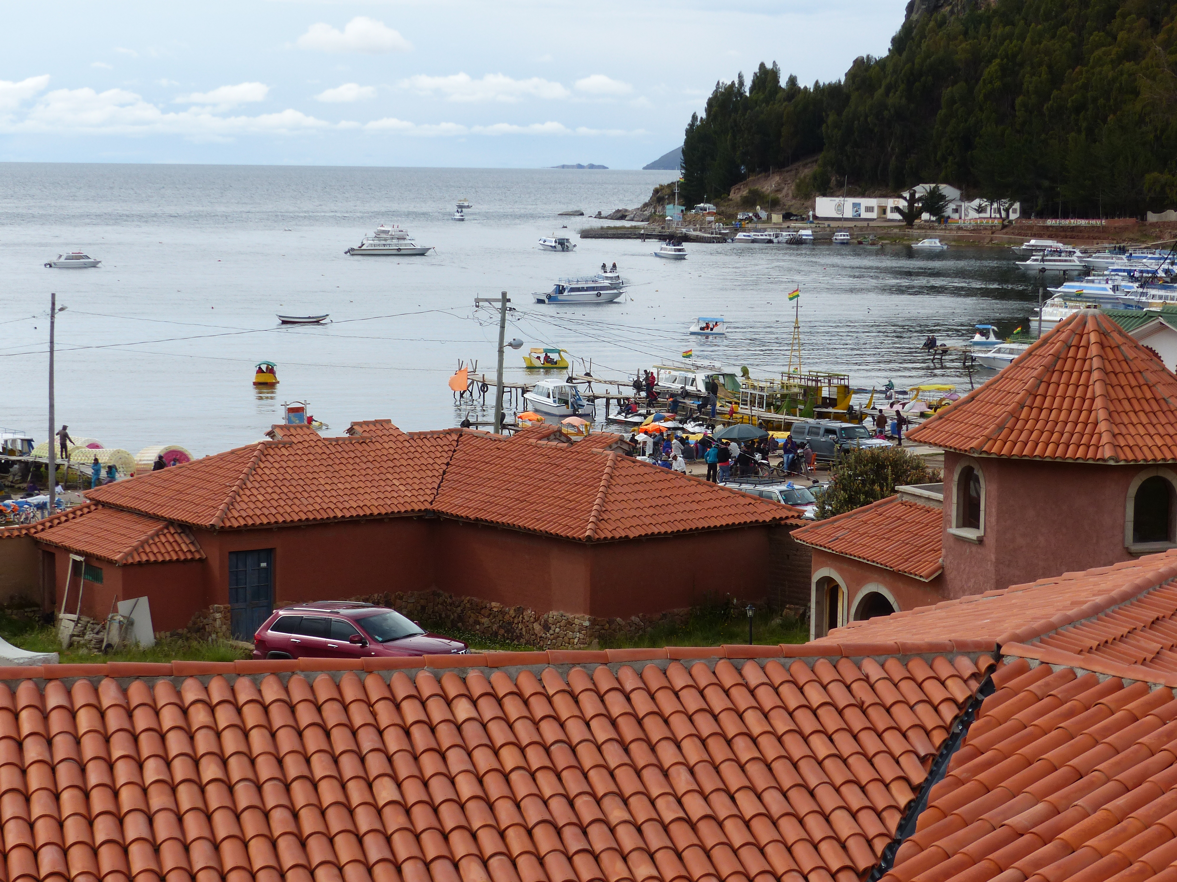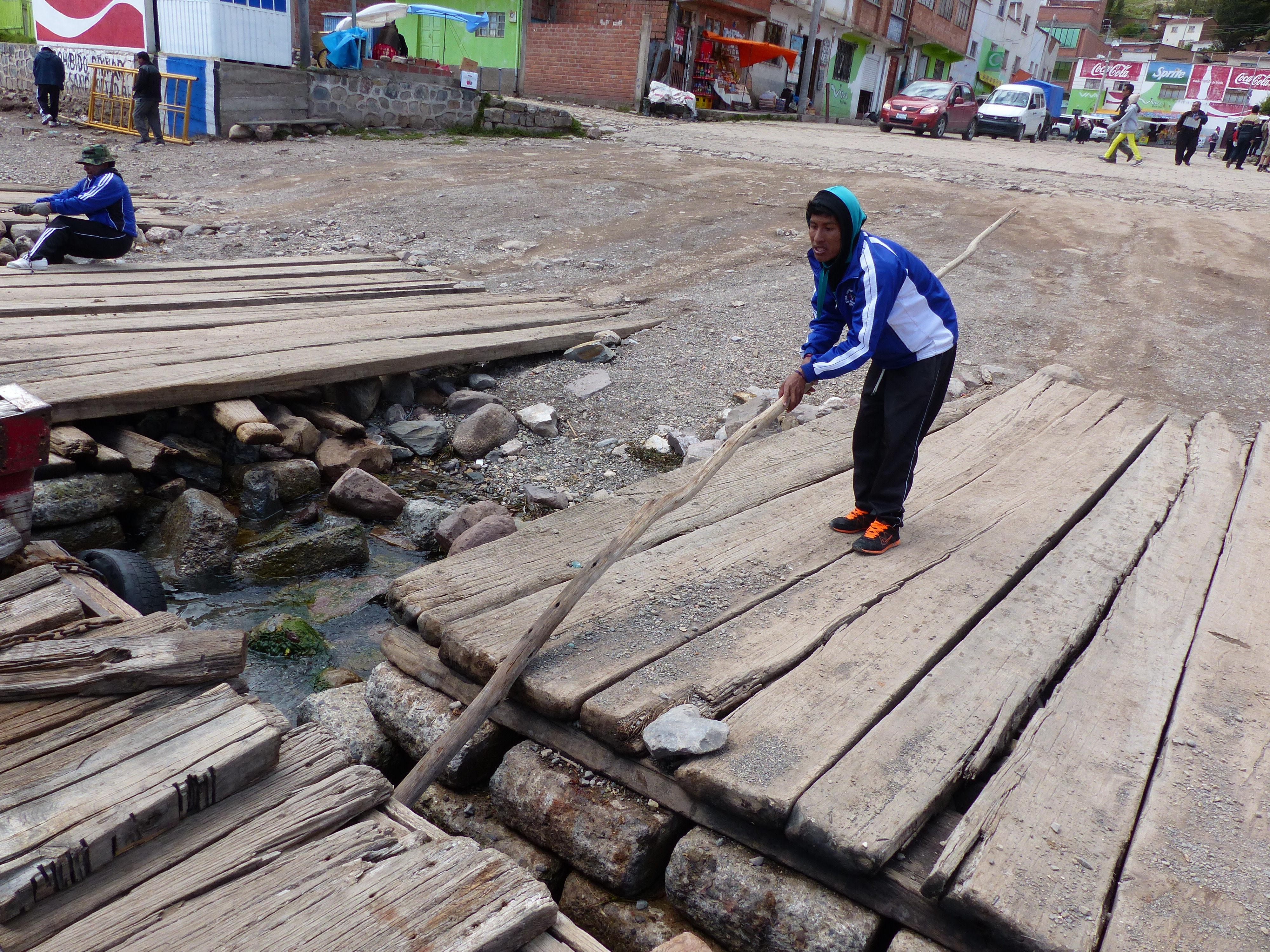 The following morning we took a ferry off the Peninsula of Copacabana to San Peblo du Tiquina. The ferry was pretty basic with several holes in the deck and powered by a 50 hp outboard motor.