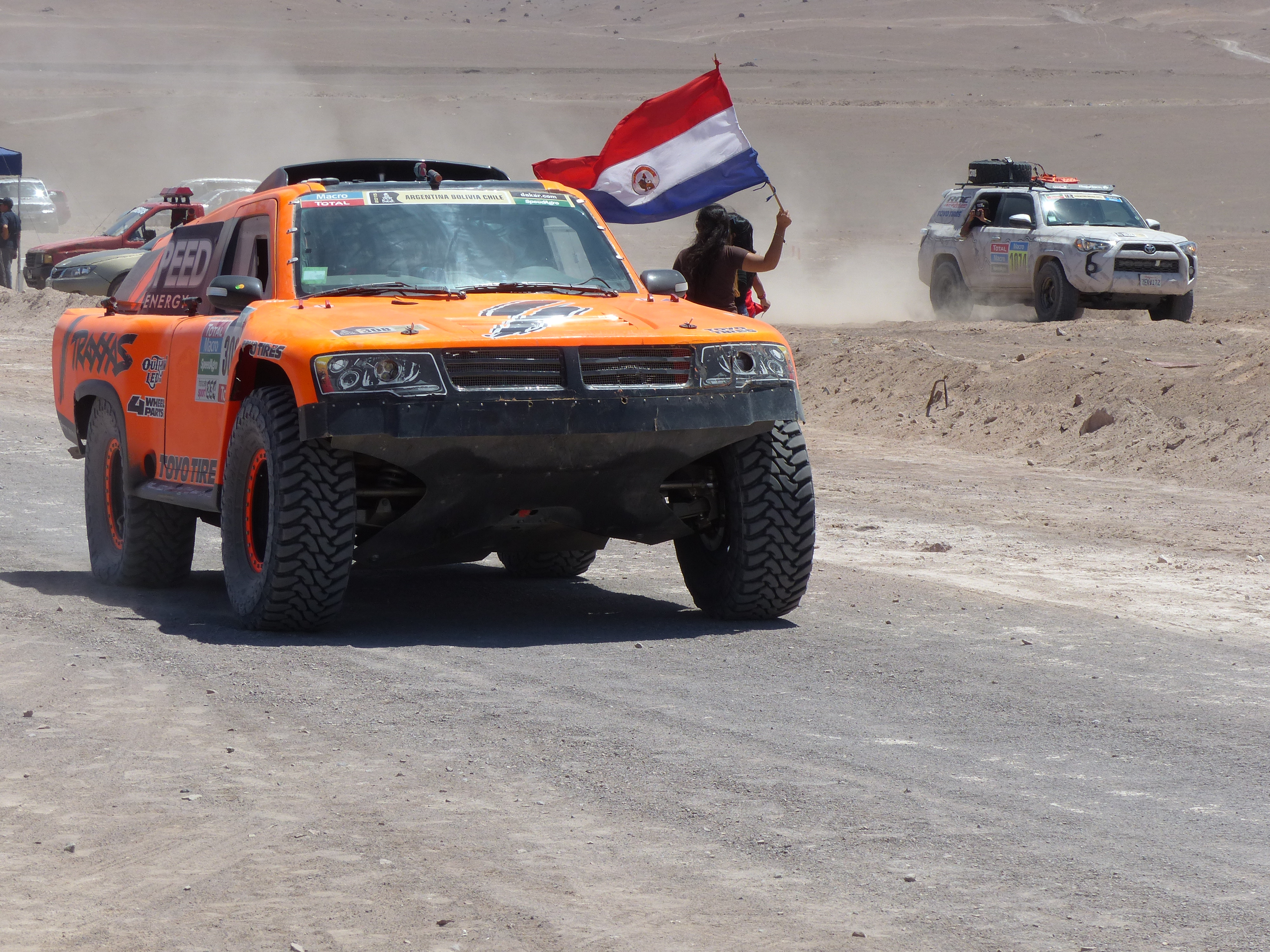 The next four days were spent enjoying waiting and watching the arrival of the Dakar bikes, cars and trucks. Watching competitors crossing the finishing line of stage 6 after they had just navigated through 688 kms of mainly rugged desert tracks was amazing! On the way back to our hotel Lindsay noticed Robbie Gordon’s race car and transporter at a garage next door. We were able to drop in to shake his hand and take some photos. On Monday we were once again watching as the trucks came over the 400 metre high dunes to race to the finish line!