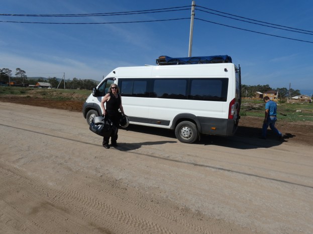 Leaving Olkhon Marian took a shuttle to the ferry to spare the bike and Lindsay. It was a most scary ride. The not friendly driver was speeding all over the road, bouncing close to edges, crossing over hills on the wrong side with all the passengers quiet as can be, just praying to get there .