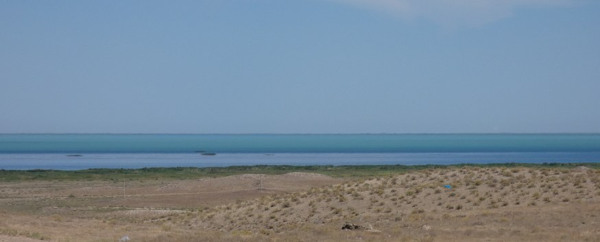 We were rode beside Lake Balkash along the way. It is a beautiful azure blue with a refreshing breeze blowing off it giving us some relief from the heat .