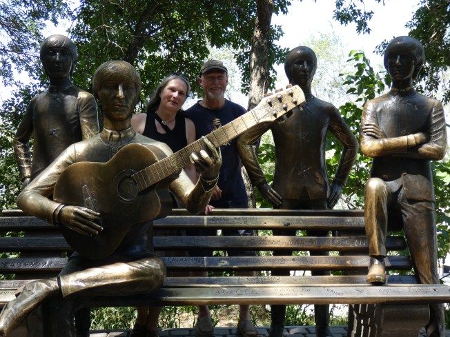 On the 5th of August we set off for Almaty, 1200 kms away, intending to stay in Balkash about half way. Started the day with all monetary systems in the hotel down, so Tom and Marian set off to find an atm that would work so we could pay our hotel bill before leaving. Mission accomplished. We set off on an excellent four lane highway for the first couple of hours, taking us to Karaganda….then we hit a rough cross over from the highway to a busy two way road…still in pretty good condition, but very busy with many commercial trucks make progress and passing difficult.