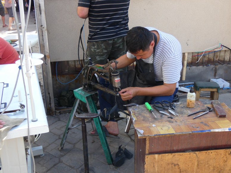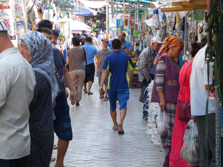 We stay one night in Osh in the Shanghai City Hotel, which had comfortable rooms but the worst breakfast of the trip. In the morning we wandered around a bit before packing up for our ride to Sary Tash.